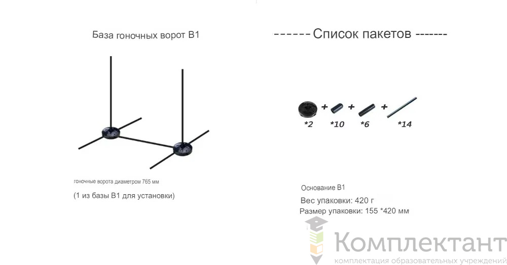 • 2 четырехсторонних ворот размером 780×780×780 мм — основные элементы трассы с высотой 1380 мм