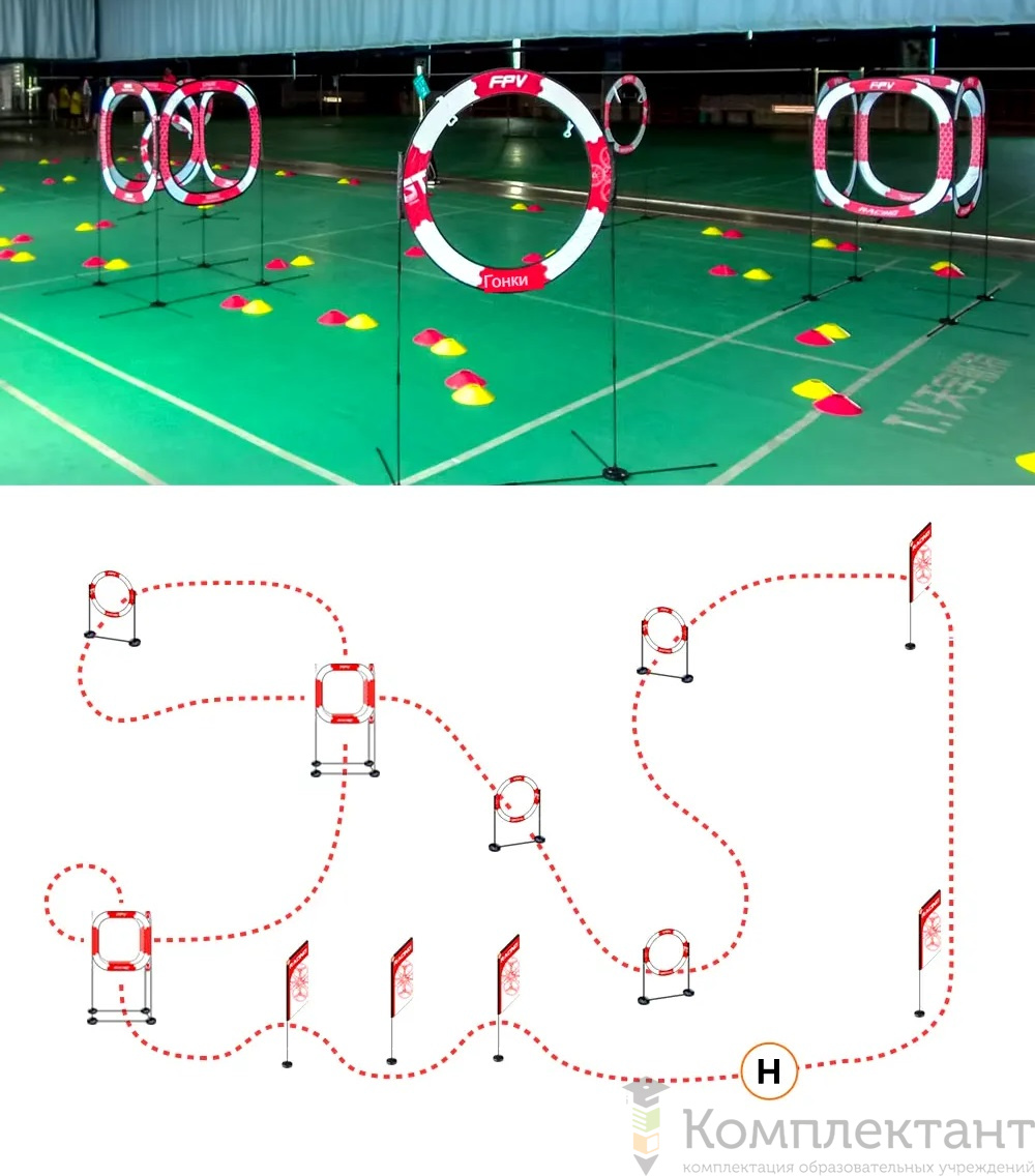 Профессиональный комплект для организации захватывающих соревнований и тренировок в помещении. Идеальное решение для образовательных учреждений, клубов и любителей гоночных дронов.