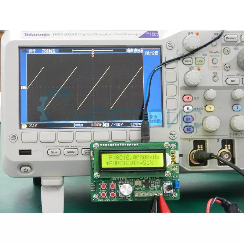 При проведении испытаний и в отладке радиоэлектронных устройств требуются источники сигналов различных частот. Функциональный генератор стандартных сигналов UDB1005S окажет незаменимую помощь в определении характеристик тестируемого устройства. С его помощью можно измерить параметры сигнала, прибор имеет встроенный частотомер (60 МГц) и счетчик импульсов, а также плавную регулировку частоты и амплитуды сигнала. UDB1005S генерирует сигналы стандартных форм – синусоидальные, прямоугольные, пилообразные, треугольные, а также отдельные сигналы TTL-логики в диапазоне частот от 0 Гц до 5 МГц. Данный DDS генератор сигналов может использоваться для настройки высокоточного оборудования и каналов связи, благодаря низкому уровню искажений.