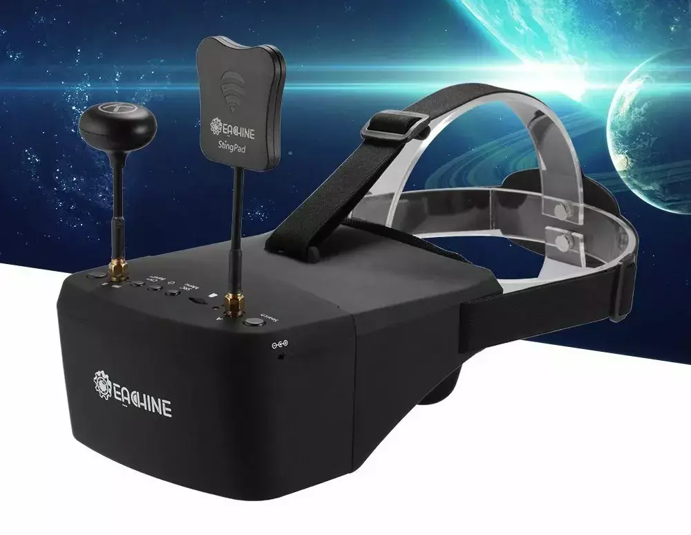 Шлем при желании владельца способен превратиться в экран с диагональю 5''. Небольшие размеры компенсирует хорошая матрица с разрешением 800х480 точек и дополнительные функции: диверсити, рекордер, встроенный автоматический поиск канала и ручной режим выбора антенны для оптимального качества. При габаритах 145х180х82 мм Eachine EV800D весит 362 г. Заводская комплектация предполагает наличие сразу двух стандартных антенн на жестком проводе: направленной плоской и всенаправленной. Экран: Батарея: Частоты (5,8 ГГц, RaceBand)