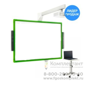 Основная особенность данного интерактивного комплекта - это короткофокусный проектор. Такой проектор устанавливается на стену над доской, и как следствие, проектор не слепит глаза и не создает тень на интерактивной доске.