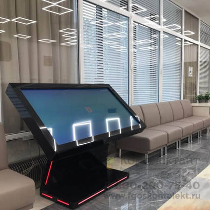 Мы разработали одну из лучших моделей интерактивных столов в нашей линейке - необычные ножки-опоры, регулировка угла наклона, возможность встраивания светодиодной подсветки и брендирования. Мы учли все, чтобы сделать этот стол универсальным инструментом для бизнеса, социальных организаций и общественных пространств.