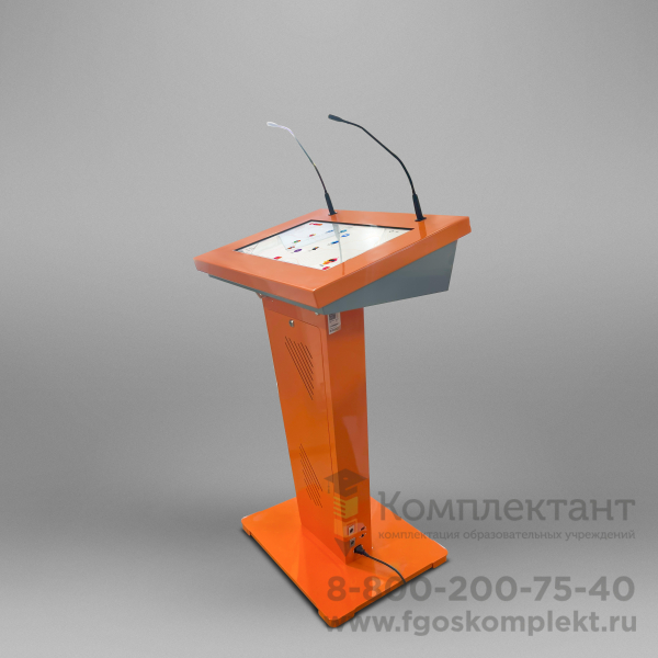 Главная задачаинтерактивной трибуны - упростить выступление спикера. Больше не нужно собирать пазл из ноутбука, микрофонов, усилителей и колонок, а после этого заниматься монтажом и настройкой - за Вас это сделает наше производство! Данный мультимедийный комплекс также подходит для проведения лекций и презентаций.