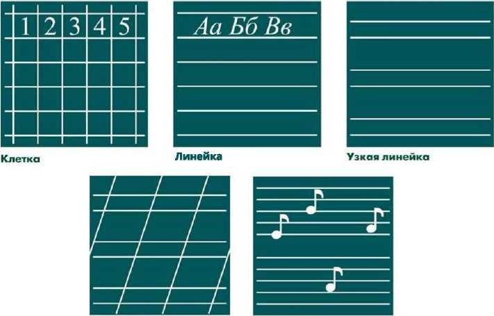 • Разлиновка: клетка, линейка, косая линейка, нотный стан