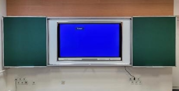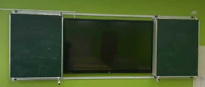 • Рельсовая система дает возможность сдвигать доски, открывая или закрывая интерактивный экран.