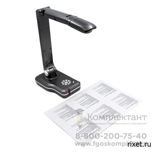 Устройство обеспечивает захват изображения в реальном времени, сканирование материалов вплоть до A3 формата, имеет функцию «картинка в картинке» и возможность записи звука. Управление камерой осуществляется посредством специального манипулятора, пульта, интерактивной панели и панели управления на камере.