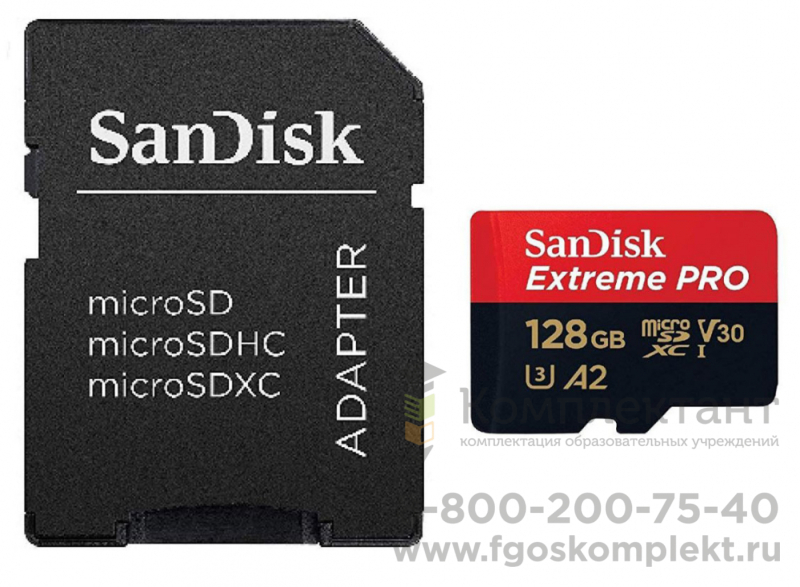 Карта памяти SanDisk Extreme Pro microSD V30 170MB/s 128GB, адаптер на SD