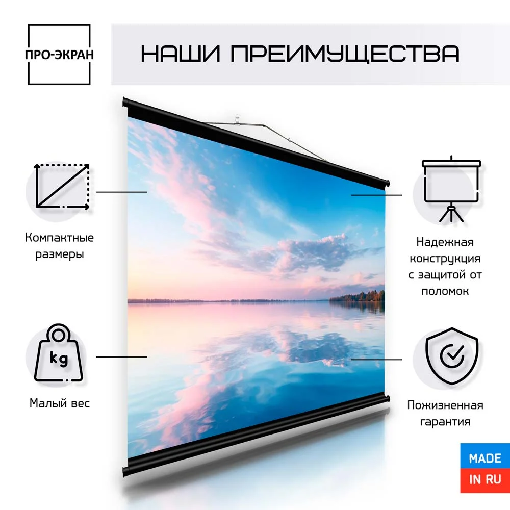Экран для проектора ПРО-ЭКРАН 120 на 75 см (16:10), 56 дюймов – идеальное решение для учебных классов и презентаций. Яркое изображение с широким углом обзора для максимальной наглядности. Легко устанавливается и подходит для любых помещений.