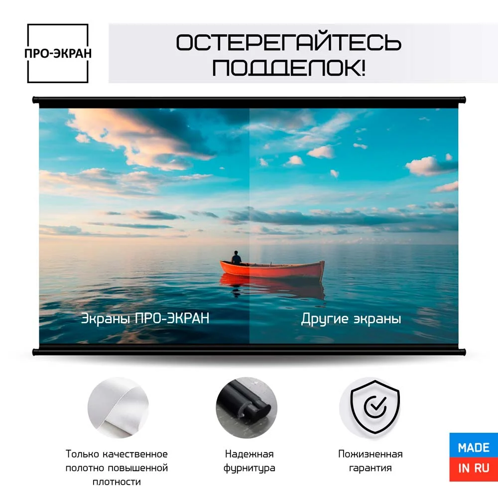 Для изготовления экранов ПРО-ЭКРАН используется высококачественное белое ПВХ полотно с коэффициентом усиления 1 и натуральной цветопередачей. Матовая поверхность экрана гарантирует отсутствие бликов, обеспечивает высокую яркость и большие углы обзора до 170°