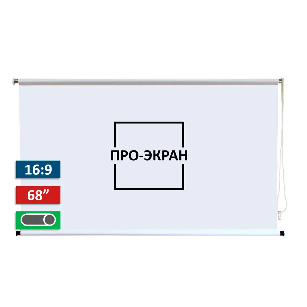 Рулонный экран для проектора ПРО-ЭКРАН 150х85 см (16:9), 68 дюймов