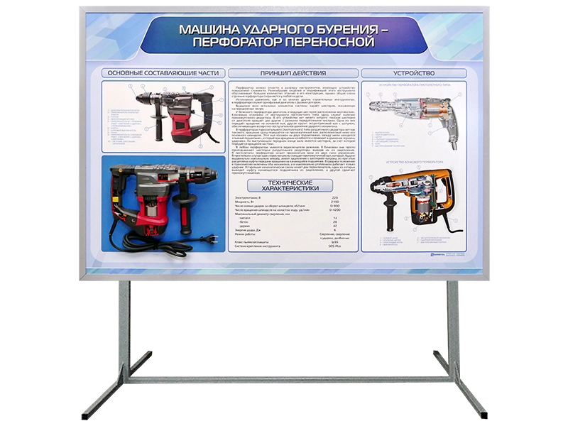 Стенд-планшет "Машина ударного бурения - перфоратор переносной" с натурными образцами