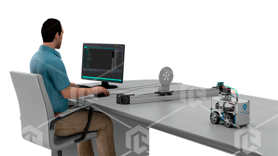Комплекс позволяет провести изучение принципа работы головок самонаведения с помощью моделирования аппаратных средств наведения на масштабных полунатурных моделях. Данный практикум содержит в своем составе блок работы с физическими первичными преобразователями, а также датчиками и моделью подвижного объекта в виде самоходной роботизированной платформы, а также блок специализированного программного обеспечения, позволяющего произвести демонстрацию работы системы наведения и управления подвижным объектом на основе оптической и другой информации, полученной с первичных преобразователей. Практикум охватывает базовые вопросы исследования и разработки навигационных систем, а также систем наведения, построенных на обработке информации с оптических сенсоров, а также ультразвуковых и лазерных дальномеров.