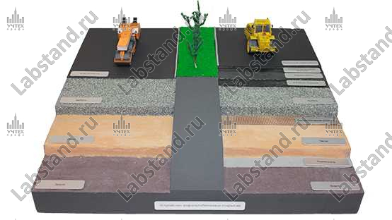 — Макеты по устройству земляного полотна, дренажной сети, дорожного основания и асфальтобетонных покрытий