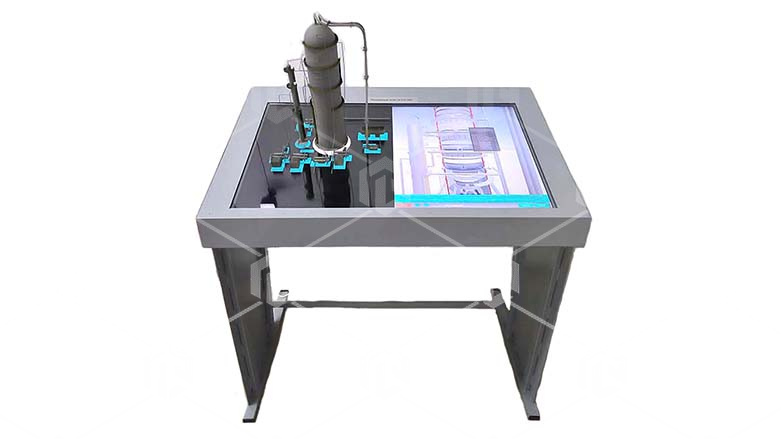 Стационарный интерактивный макет на мобильной платформе позволяет изучать последовательность и логистику технологических процессов вакуумного блока переработки нефти с возможностью сенсорного ввода и управления, отображать трехмерные разрезы выбранного элемента оборудования на дисплее макета.