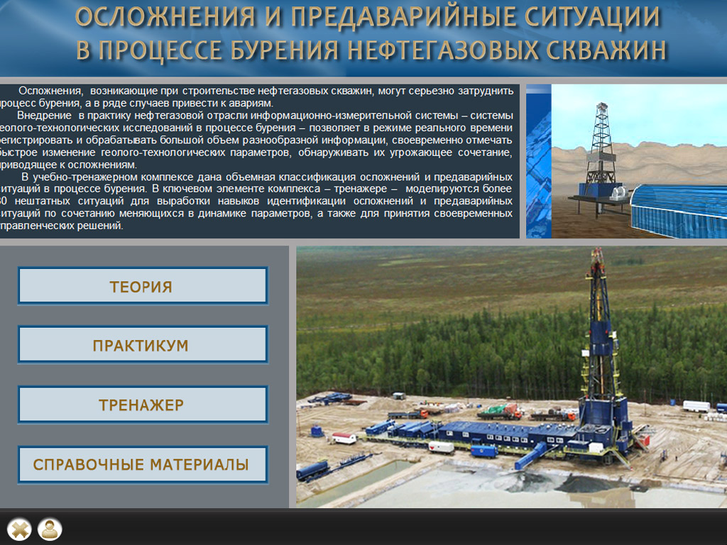 Интерактивный тренажер имитирует 32 нештатные ситуации: предаварийные ситуации и осложнения, которые возникают в процессе бурения. Он демонстрирует характерные для каждой ситуации графические зависимости 19 параметров бурения во времени и показывает детальные анимированные иллюстрации происходящего в скважине. Это позволяет обучающимся отработать навыки быстрой идентификации сложившегося положения и оперативной выдачи рекомендаций по исправлению ситуации.
