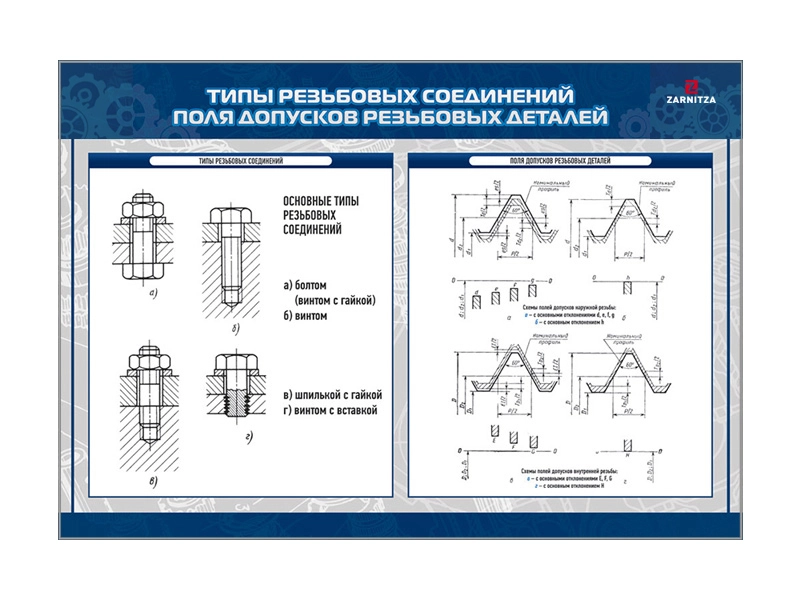 - Типы резьбовых соединений. Поля допусков резьбовых деталей.