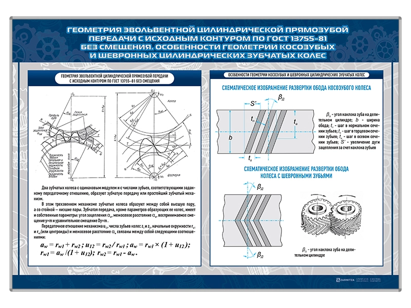 - Геометрия эвольвентной цилиндрической прямозубой передачи с исходным контуром по ГОСТ 13755-81 без смещения. Особенности геометрии косозубых и шевронных цилиндрических зубчатых колес.