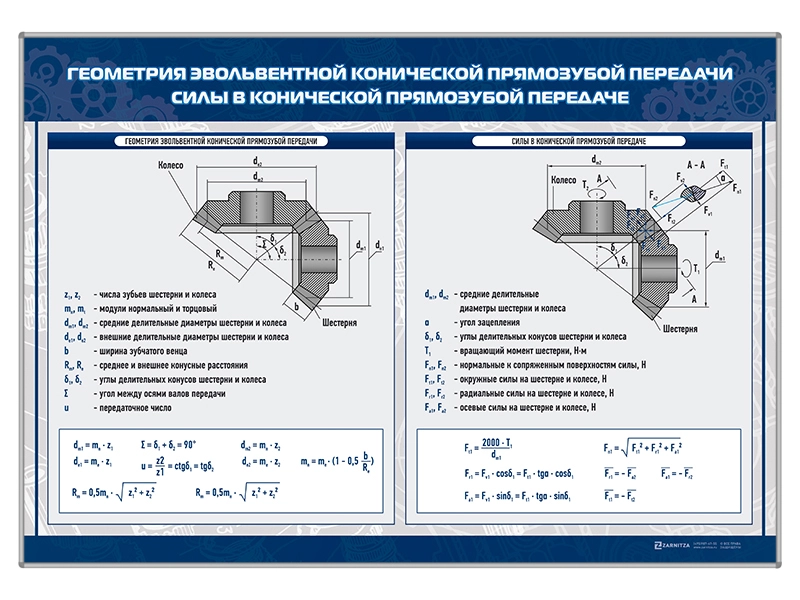 - Геометрия эвольвентной конической прямозубой передачи. Силы в конической прямозубой передаче.