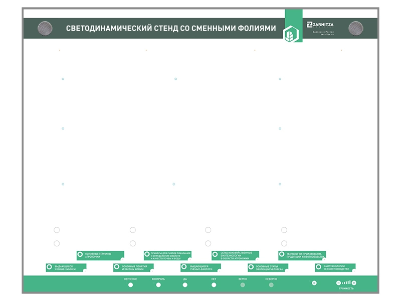 Светодинамический стенд предназначен для приобретения и закрепления учащимися образовательных учреждений сельскохозяйственного профиля базовых знаний, а также проведения интерактивной проверки знаний.