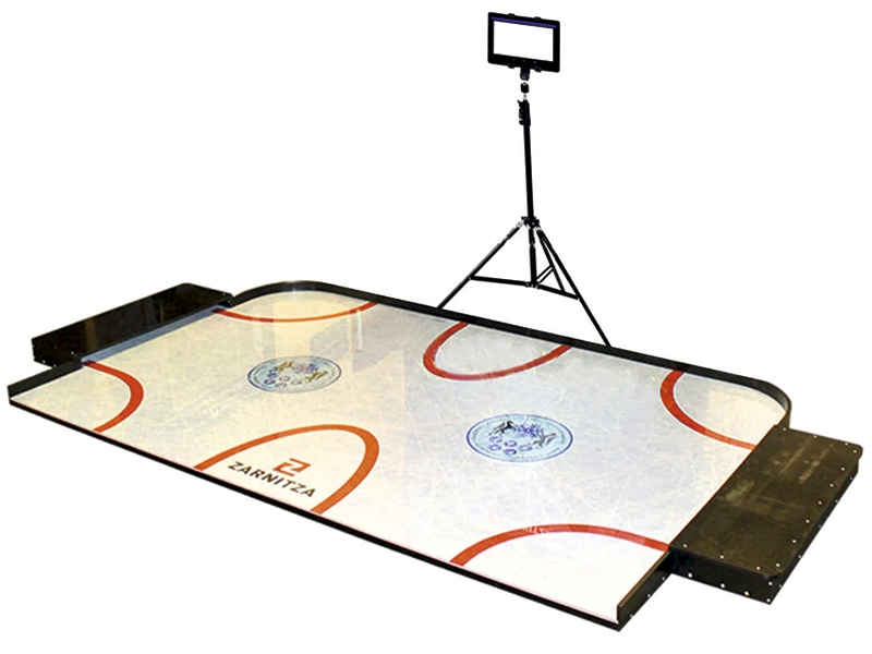 Поле предназначено для отработки тренировочных упражнений. Основание и поверхность интерактивного поля выполнены из высококачественных, ударопрочных и нетоксичных материалов. Поле снабжено зонами, выделенными разметкой, в которых расположены датчики определения положения специальной шайбы.
