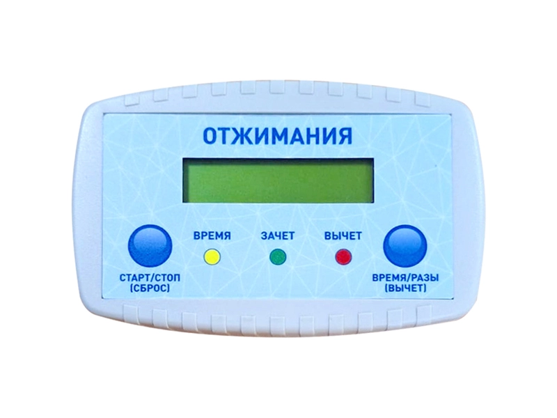 На ЖК-дисплее пульта отображается текущий режим работы комплекта, количество выполненных отжиманий и время выполнения упражнения. С помощью кнопки на пульте можно вычесть повторение, если оно, на взгляд тренера, выполнено с нарушением правил. Реализована автоматическая звуковая сигнализация излишней паузы (более 0,5 с) в нижнем положении у выполняющего упражнение.
