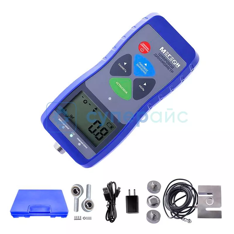 зарядное устройство – 1 шт; кабель USB - mini-USB – 1 шт; пластиковый кейс – 2 шт; выносной тензометрический датчик – 1 шт; руководство по эксплуатации – 1 шт |