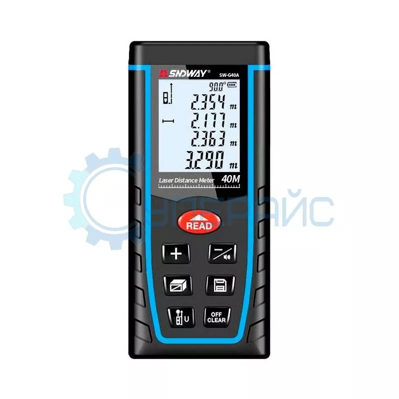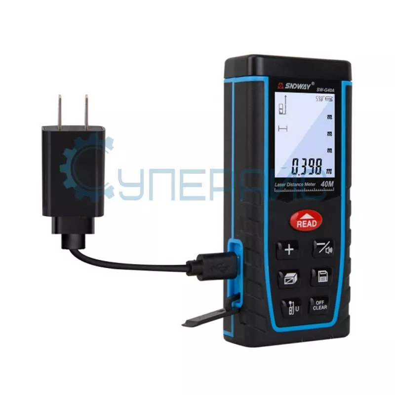 Лазерный дальномер SNDWAY SW-G40A – это доступный измеритель расстояния для строителей, архитекторов, инженеров, дизайнеров и других специалистов, работающих с точными планами помещений и зданий. Прибор обладает отличными эргономическими и массогабаритными характеристиками, имеет широкую функциональность и способен измерять расстояния до 40 метров с погрешностью всего 1,5 мм. Допускается измерение не только в метрах, но и в дюймах или футах.