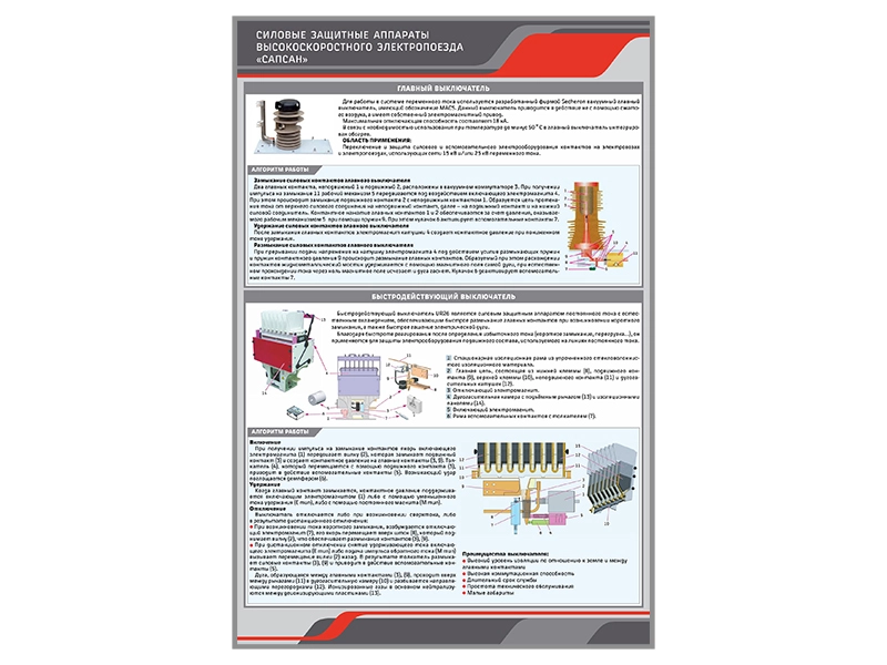 Стенд представляет собой информационную панель, на которой изображены силовые защитные аппараты высокоскоростного электропоезда "Сапсан".