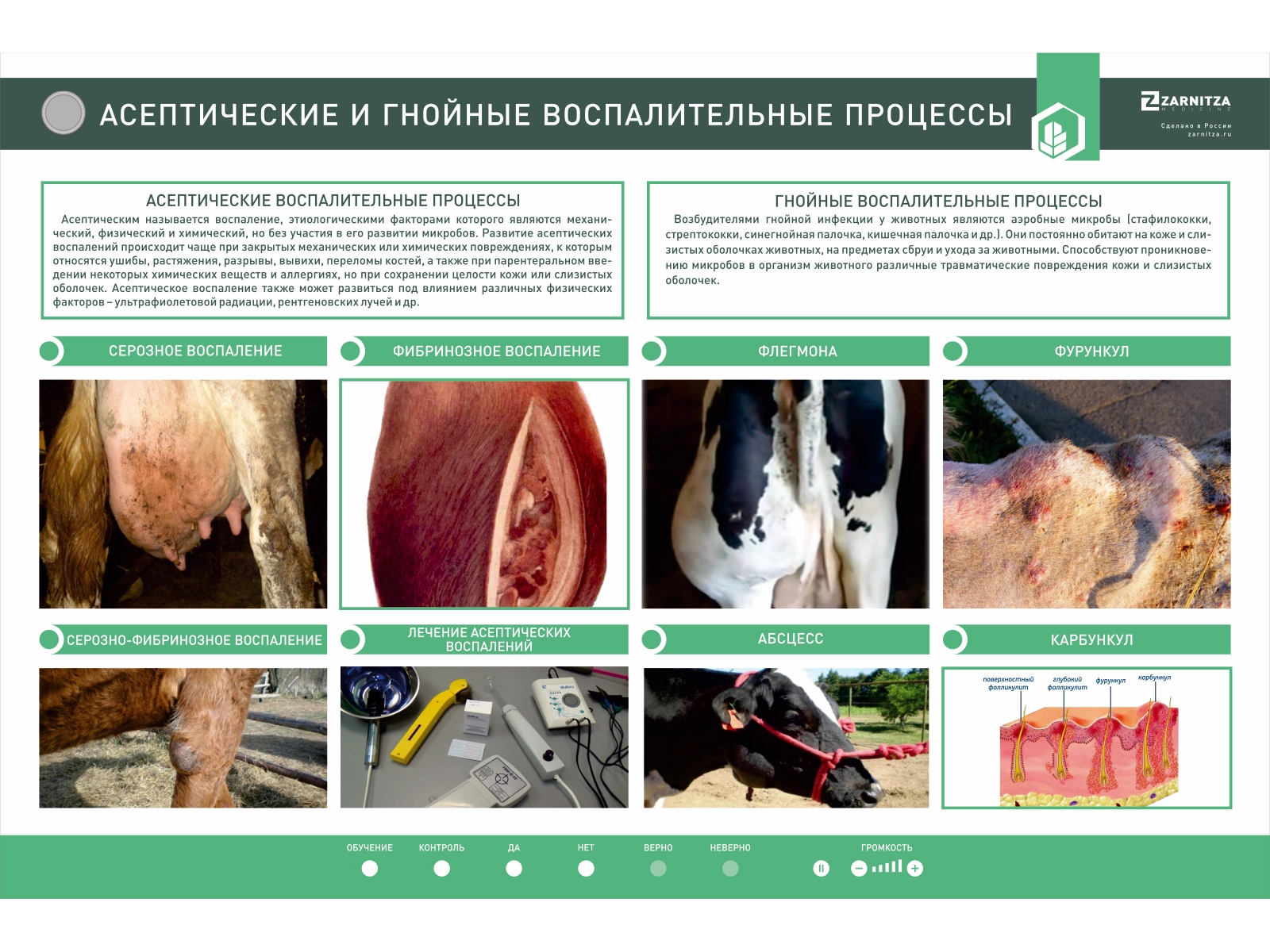 Интерактивный стенд предназначен для получения знаний о асептических и гнойных воспалительных процессах.