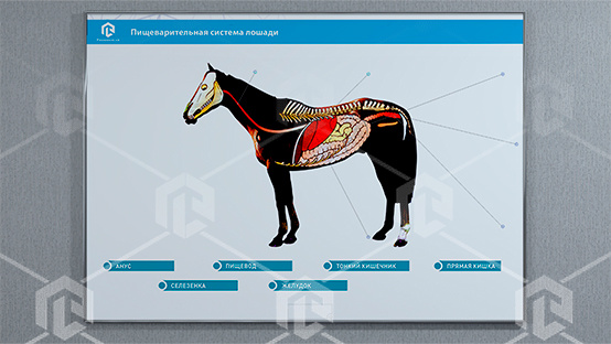 Светодинамический стенд-планшет предназначен для получения знаний об устройстве пищеварительной системы различных сельскохозяйственных животных.