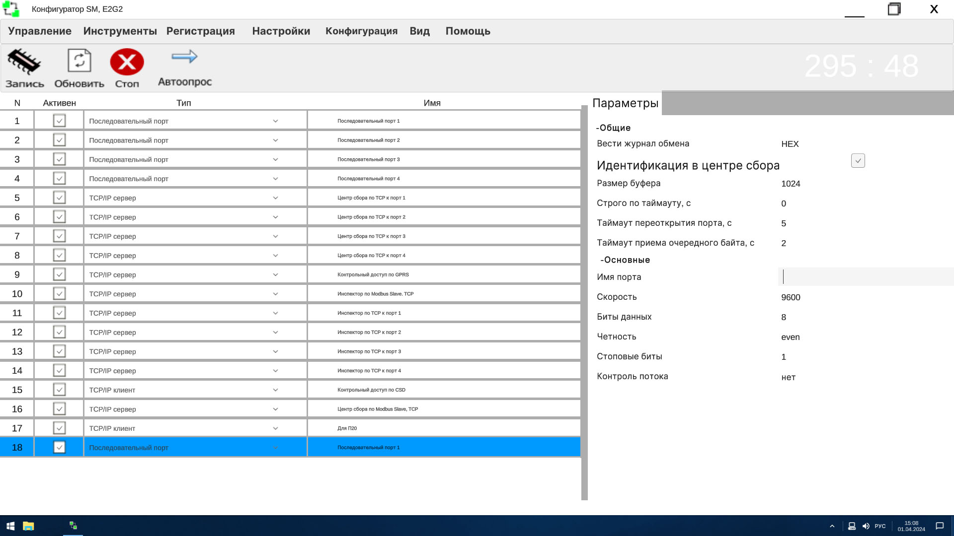 • Подключить УСПД к компьютеру и задать настройки конфигурации для передачи данных