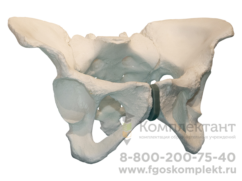Модель представляет точную анатомическую копию таза человека. Путем подбора полимерных материалов механические свойства изделия (вес, плотность, упругость) максимально приближены к естественным прижизненным значениям.