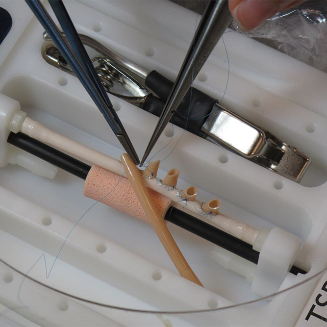 - тренажер укомплектован моделями целевых сосудов (в которые будет производиться вшивание шунтирующего сосуда) двух разных диаметров и моделями сосудов для трансплантации (которые будут вшиваться в целевой сосуд) двух разных диаметров