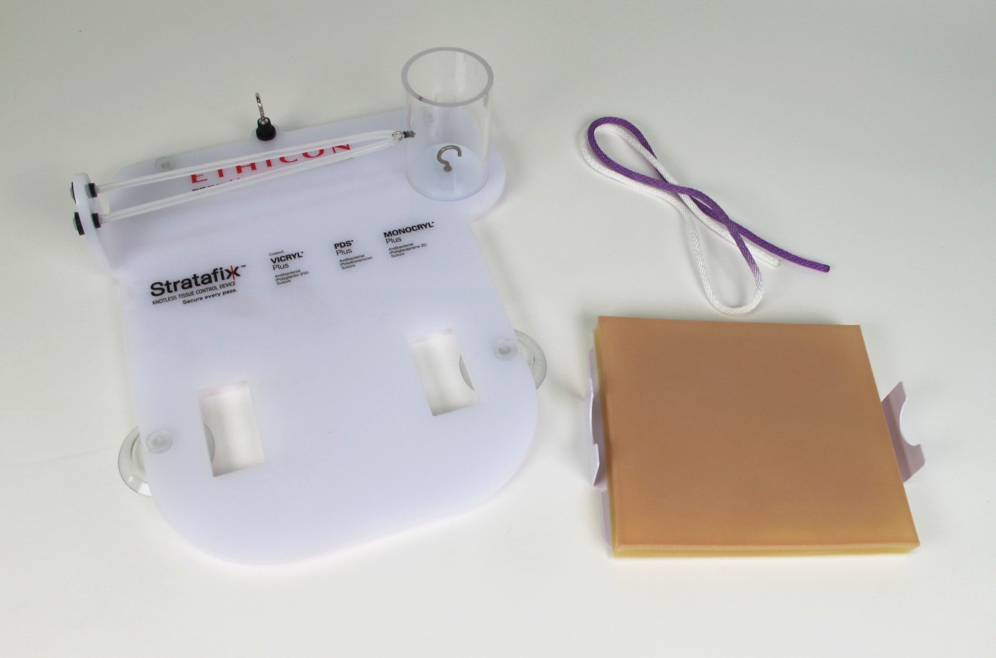 - кожная подушечка на съемной подставке позволяет сочетать отработку навыков наложения швов и вязания узлов для сопоставления краев раны