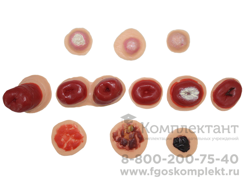 Комплект моделей предназначен для обучения принципам диагностики и лечения часто встречающихся заболеваний и повреждений кожи и подкожной жировой клетчатки. Модели выполнены из полимерных материалов, реалистично воспроизводящих строение и топографию поверхностных мягких тканей человека, удобны для планирования и осуществления учебных операций.
