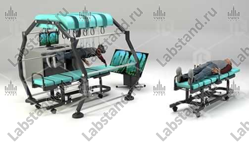 • Аппаратный комплекс лаборатории предназначенный для фиксации больного в вертикальном положении (вертикализатор) или специализированный комплекс-подвес для горизонтального подвешивания больного, с последующим перемещением конечностей больных.