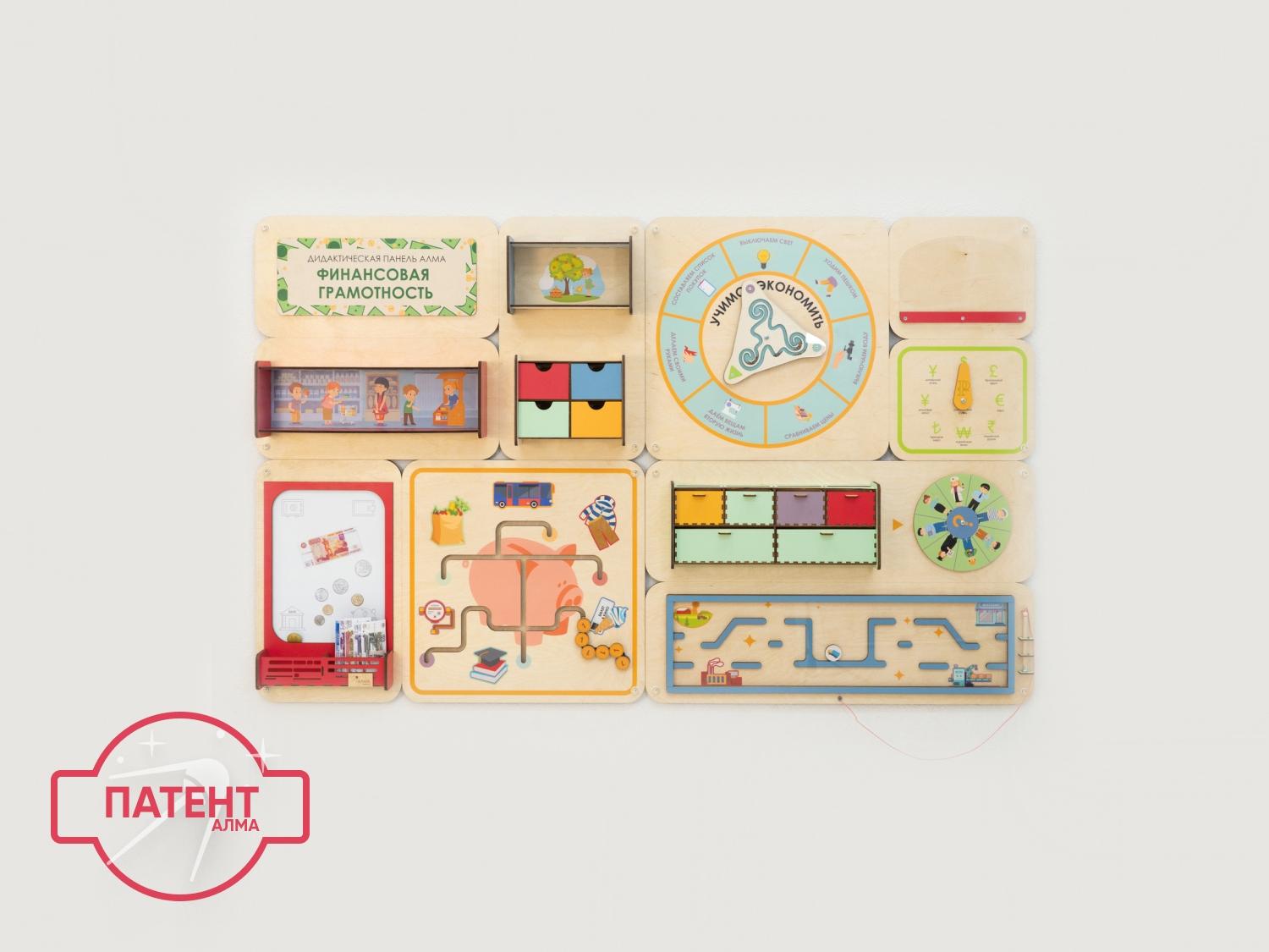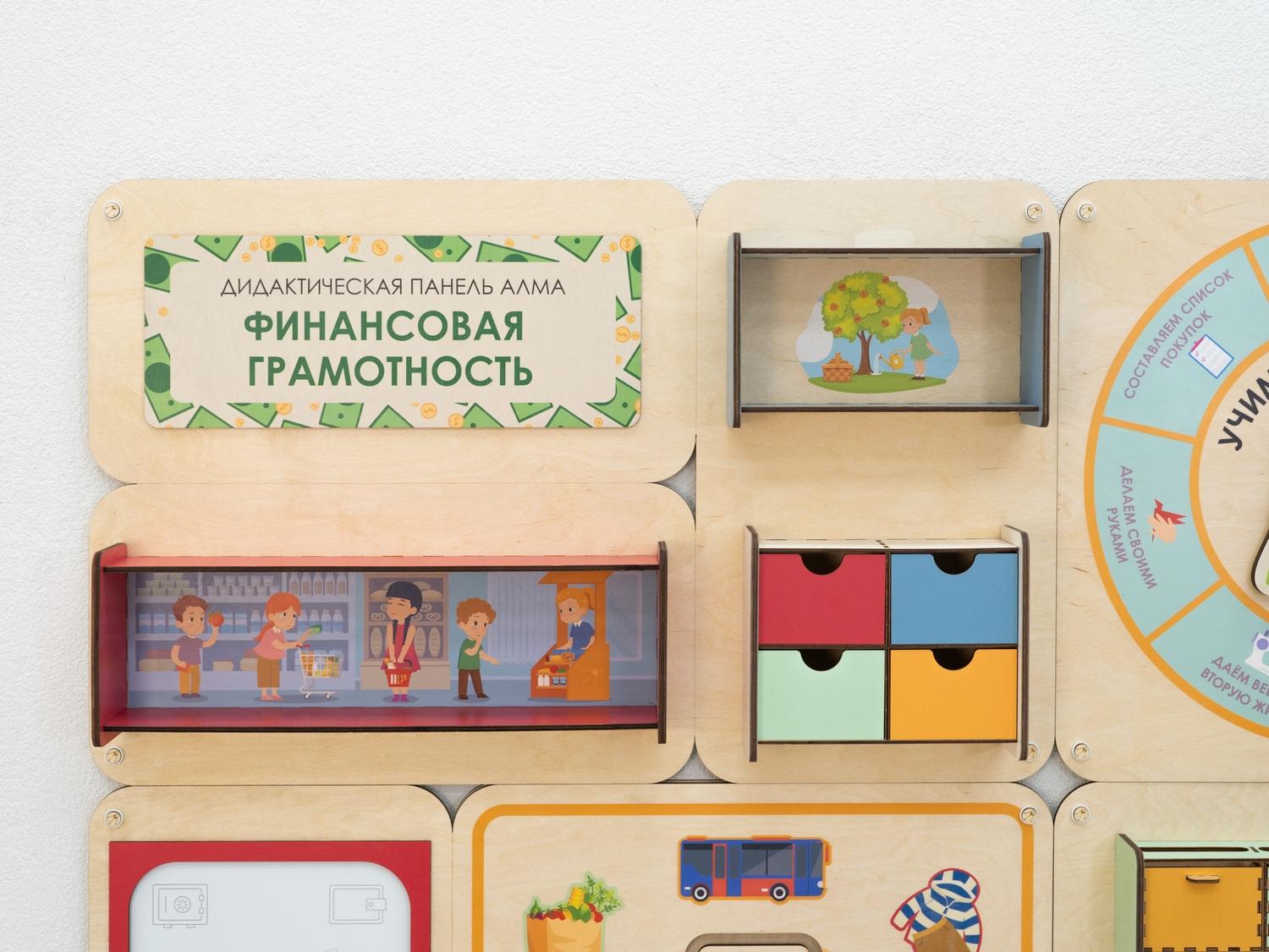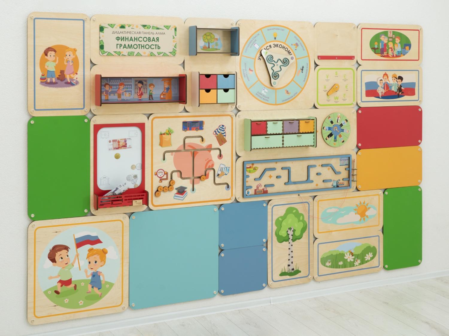 Образовательно-развивающая настенная панель для обучения дошкольников в детских учебных учреждениях основам финансовой грамотности. Игровые элементы по системе Монтессори развивают мелкую моторику детей, а подробное методическое руководство помогает педагогам в проведении занятий. Подходит для оснащения детских садов и учреждений дополнительного детского образования.