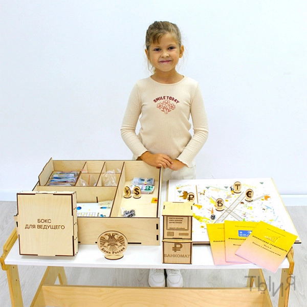 Дополнительным элементом комплекса являются боксы для денег, в которых дети могут хранить и управлять своими "финансами". Это поможет им понять, как работает денежная система, с чего начиналось использование денег в истории человечества и почему финансовая грамотность так важна.