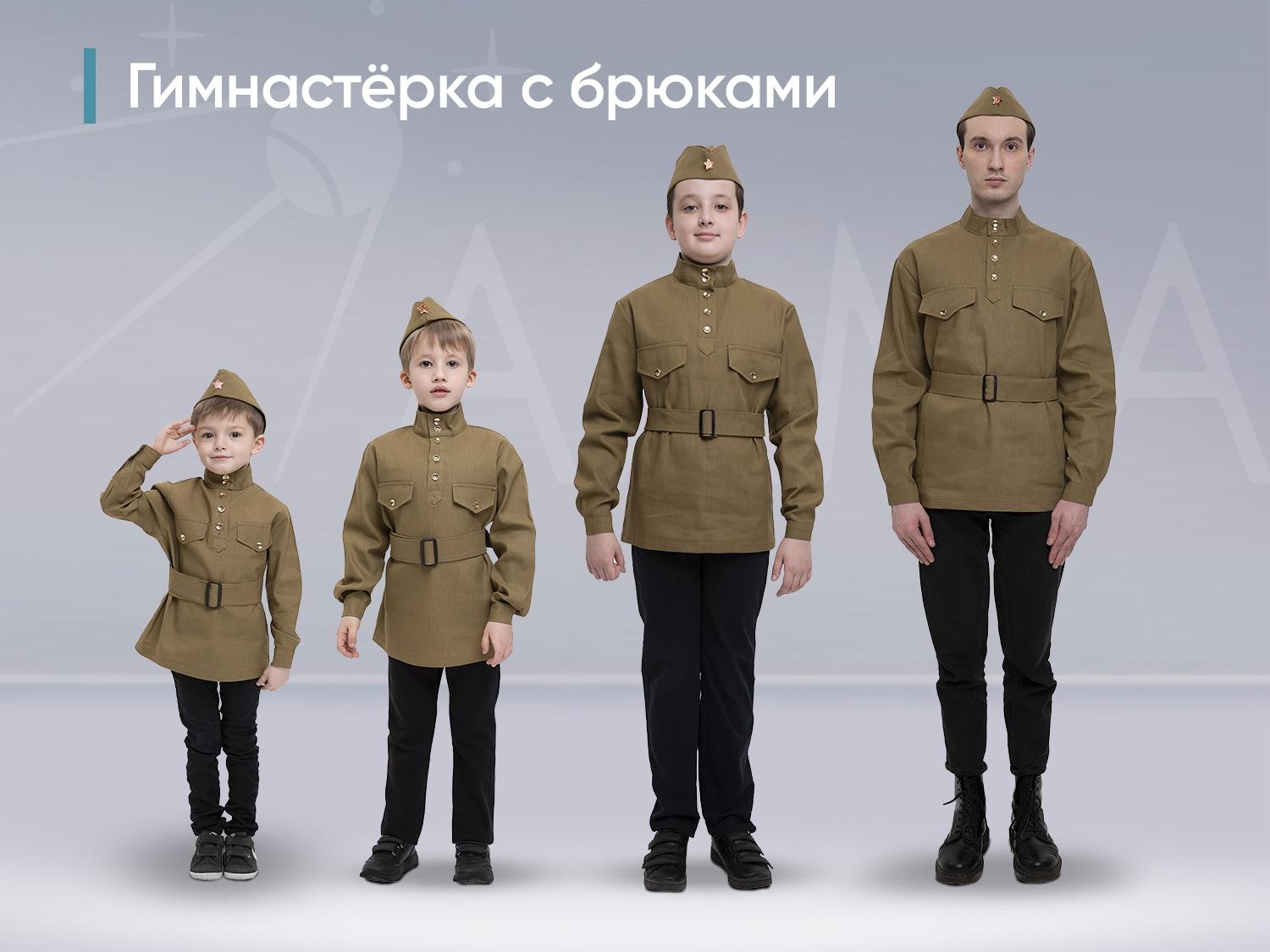 Детская и взрослая военная форма для мальчиков для организации театрализованных военно-патриотических постановок и парадов. Предлагаем полные комплекты военной формы, и по отдельности: гимнастёрки, брюки, пилотки, сапоги, вещмешки, плащи т.д. Все изделия отлично садятся на детские и взрослые фигуры и не сковывают движения. Одежда выполнена по лекалам времен ВОВ.