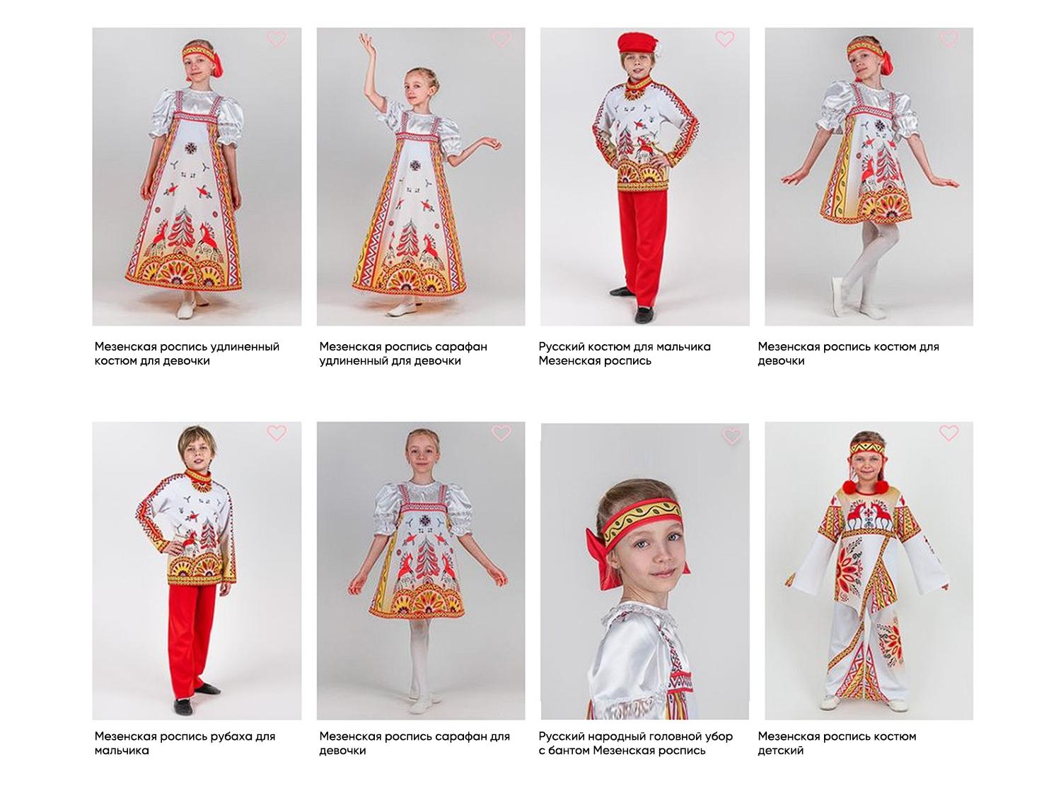 Мезенскую роспись еще называют палащельской и рассказать об этом, а еще о множестве интересных фактов из русского народного быта можно с помощью костюмов этой линейки. Наряды подходят для театров, стилизованных постановок в творческих детских кружках, они могут использоваться в домах культуры. А еще такие костюмы рекомендуются для проведения занятий в детских садах, школах и знакомства с русскими обычаями и историей.