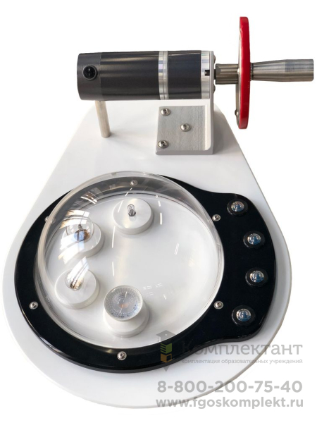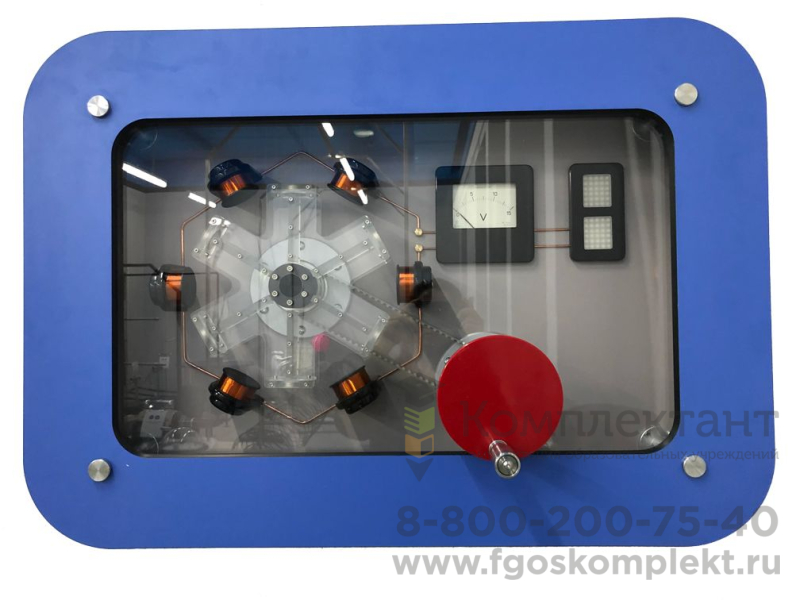 При вращении маховика приводится в движение ротор, при этом наблюдается генерация электрического тока в цепи. Электрическая цепь состоит из попеременно включающихся светодиодов и измерительного прибора.