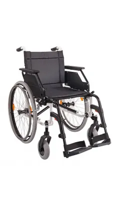 Облегченная инвалидная коляска c новой геометрией рамы, обеспечивающей повышенную жесткость. Настройки высоты и глубины сиденья, индивидуальной установки подлокотников, подножек.