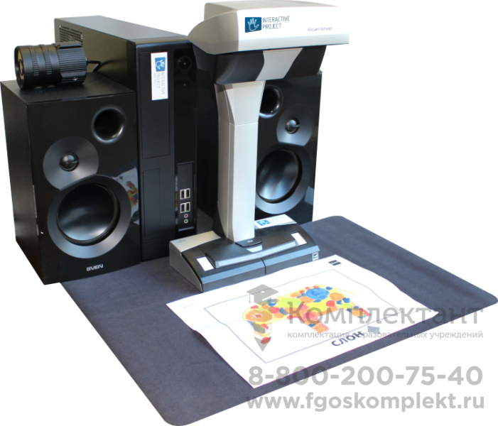 В комплект входят: | 1. Тумба (с компьютером и сканером) 2. Камера 3. Беспроводные клавиатура и мышь 4. Технический паспорт 5. ПО Ожившие рисунки 6. Сертификат 7. Гарантийный талон 1 год |