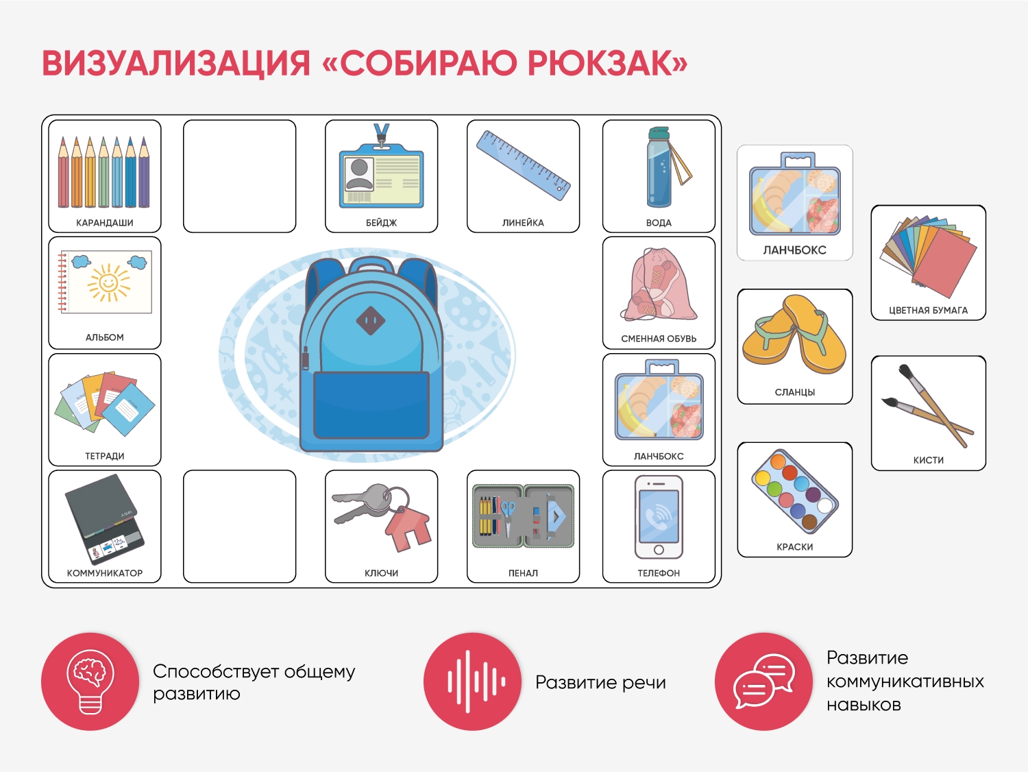 Карточки ПЭКС: визуализация «Собираю рюкзак»