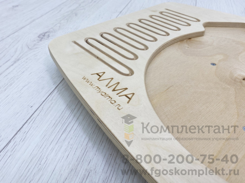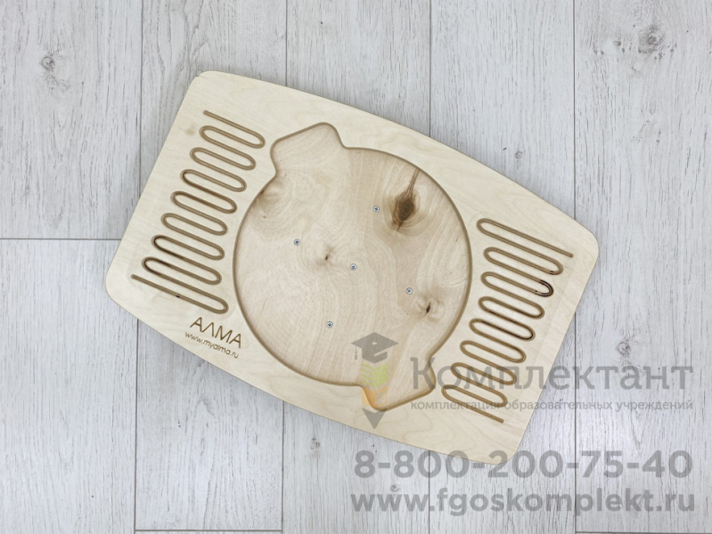 Это игровой тренажёр, улучшающий работу мозга через тренировку всего тела. Состоит из прямоугольной доски, закреплённой на неустойчивом основании в виде полусферы. В зоне ног ребристая змейка и противоскользящее покрытие. В центре балансира углубление под вставку-лабиринт. Её можно заказать отдельно.