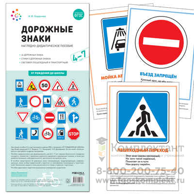 Дорожные знаки. Наглядно-дидактическое пособие. 4-7 лет.ФГОС Пособие издано в рамках учебно-методического комплекта к программе «ОТ РОЖДЕНИЯ ДО ШКОЛЫ». Наглядно-дидактическое пособие предназначено для формирования у детей 4-7 лет навыков безопасного поведения на дороге, знакомства с правилами дорожного движения и дорожными знаками, а также для развития внимания, наблюдательности, зрительного восприятия, речи. В пособии представлено 24 дорожных знака (запрещающие, предупреждающие, информационные, знаки особых предписаний) и карточки со светофорами (пешеходный и транспортный). Назначение каждого знака разъясняется в стихах, которые с легкостью можно запомнить с детьми и подписях к картинкам. Пособие адресовано педагогам дошкольных учреждений и родителям.