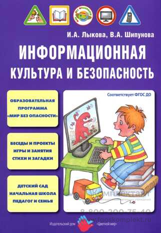 Информационная культура и безопасность Книга разработана в соответствии с ФГОС ДО и входит в базовый учебно-методический комплект, сопровождающий парциальную образовательную программу «Мир без опасности». Поможет педагогам и родителям сформировать основы информационной культуры и безопасности у детей старшего дошкольного возраста. Раскрывает ключевые понятия: информация и её основные свойства, информационная культура, информационная безопасность и др. Представляет образовательный контент для детей: содержание познавательных и ситуационных бесед, занятий и проектов, дидактических и подвижных игр. Обеспечивает информационную поддержку взрослых. Содержит фольклорный и литературный материал (загадки, стихотворения, дидактическую сказку). Адресована руководителям и воспитателям детских садов, студентам педагогических колледжей и вузов, специалистам системы повышения квалификации работников образования. Будет полезна для работы в малокомплектных, частных и семейных детских садах.