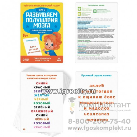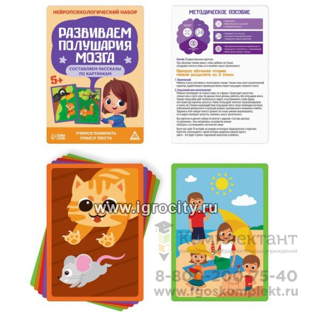 Перед вами набор, в котором собран комплекс заданий и упражнений, направленный на развитие обоих полушарий мозга. Занимаясь, ребёнок разовьёт речь и навыки чтения. В каждой игре его ждёт 20 карточек с заданиями и подробное методическое пособие. Как играть? Все задания выполняются под наблюдением взрослого. Рекомендуем начать занятия с просто материала — «Составляем рассказы по картинкам». После можно постепенно переходить к обучению чтению. Благодаря набору ребёнок научится: составлять рассказы по картинкам; читать текст, пересказывать и отвечать на вопросы; читать текст и выбирать картинку, которая ему соответствует; читать 2 текста одновременно; вставлять пропущенные окончания и слоги в словах; выполнять прочие задания.