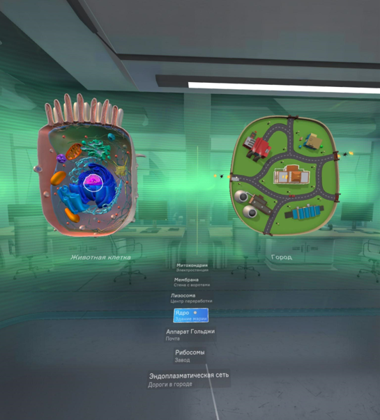 Продукт использует современные VR-технологии, создавая для учащихся эффект присутствия в цифровой лаборатории, где они могут не просто наблюдать за 3D-моделями клеток, но еще и с ними взаимодействовать.