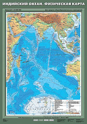 Учебн. карта "Индийский океан. Физическая карта" 70х100